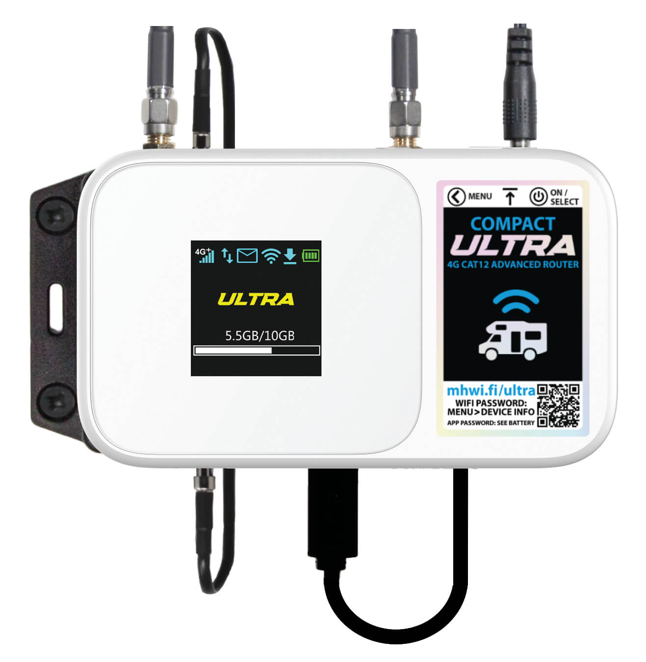 Easily manage your connection using the built-in colour LCD screen or via a free smartphone/tablet app. From data usage tracking and password updates to accessing advanced settings, everything is at your fingertips. For optimal performance, pair the Ultra with our 4G Smart or bestselling 5G Ready roof antennas.